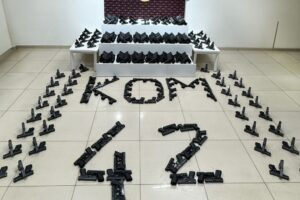 Konya Emniyet Müdürlüğüne bağlı Kaçakçılık ve Organize Suçlarla Mücadele Şube Müdürlüğü (KOM) ekipleri “6136 Yasak Olmayan Bıçak ve Başka Aletleri Sadece Akında Kullanmak Hedefiyle Taşımak” cürmüne yönelik yürütülen çalışmalar çerçevesinde Selçuklu ilçesinde bir ikamette kaçak silah stoklandığını belirledi.