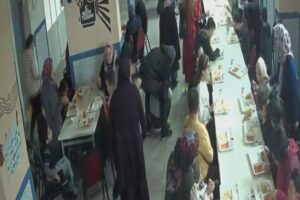 Olay anı yemekhanedeki güvenlik kameraları tarafından kaydedildi.