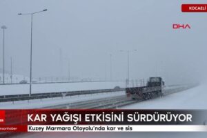 Kocaeli’de sabah saatleri itibariyle başlayan kar yağışı aralıklarla tesirini sürdürüyor. Kuzey Marmara Otoyolu’nun Körfez ilçesi geçişi Sevindikli mevkisinde kar yağışı ve sis nedeniyle ulaşımda vakit zaman aksamalar yaşandı. Otoyolun, İstanbul ve Ankara istikametlerinde karayolları takımları tuzlama ve kar küreme çalışması gerçekleştiriyor.