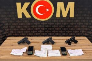 Operasyonda 3 adet ruhsatsız tabanca, 10 adet fişek, 2 adet pos aygıtı, çok sayıda senet ele geçirildi.