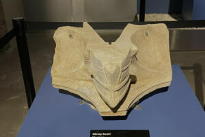 Prof. Dr. Sezgin, “Aigai Meclis binasında ortaya çıkan bu güneş saati hayli özel. Dor üslubu bir sütun başlığı üzerinde yer alan saat, tabandan yükseltilerek pozisyonlandırılmış. Yapının ön kısmı bir gemi pruvası biçiminde tasarlanmış ve her iki yanında ‘nazar’ı simgeleyen göz motifleri yer alıyor” dedi.