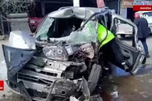 Manisa’da sürücü ve yolda yürüyen yayanın yaralandığı kaza