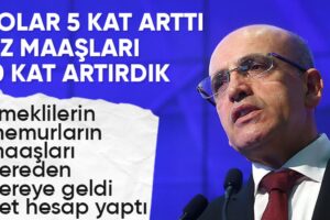 Bakan Şimşek, yaptığı konuşmada Türkiye iktisadına dair dataları aktardıktan sonra emekli ve memurların maaşlarının nereden nereye geldiğini hesapladı.