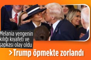First Lady Melania Trump’ın kıyafeti de çok konuşuldu. Melania’nın giydiği şapka dikkat çekerken, Donald Trump, şapka nedeniyle eşini öpmekte zorlandı.