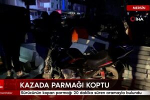 Mersin’in Faziletli ilçesinde motosiklet kazasında şoförün kopan parmağının bulunması için vatandaşlar seferber oldu. Kopan parmak yaklaşık 20 dakika süren aramayla bulundu.