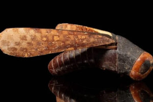 Mısır Hükümdarı Tutankom’un mezarından yasa dışı bir halde çıkarıldığı da öne sürülen bu çekirge Londra’daki bir müzayede konutunda düzenlenen açık artırma sonucunda yeni sahibiyle buluştu.