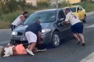 Kazanın çabucak akabinde alkollü şoförün kaçmaya çalıştığı tez edilirken yaşananlar vatandaşlar tarafından görüntülendi.