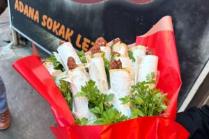 Alev Akgün’ün talebi üzerine çiçekçi Ceren Turan ile iş birliği yapan Şenses, Adana dürümlerini çiçek buketi biçiminde hazırladı.