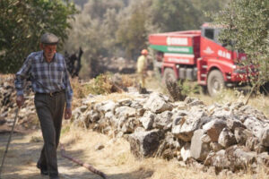 Muğla’da yangın çıkan antik kentte yaşayan yaşlı adam zar zor ikna edildi