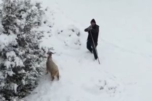 Ankara’da Nallıhan ilçesine bağlı Sarıkaya köyünde yaşanan olayda, karla örtülü ormanlık alanda hayvanlarını otlatan bir çoban ile havada seyreden bir drone ortasında değişik anlar yaşandı.