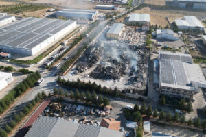 Yangının çıkış nedeninin belirlenmesi için inceleme başlatırken, fabrika ve etrafında güvenlik tedbirleri sürdürülüyor.