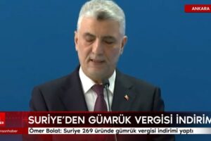 Ticaret Bakanı Ömer Bolat, Türkiye ve Suriye ekonomik bağlarına değinerek, Suriye’nin un, yumurta, mısır üzere eserlerin de olduğu 269 eserde gümrük vergisi indirimi yaptığını söyledi.