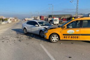 Osmaniye’nin Düziçi ilçesi Muhsin Yazıcıoğlu Bulvarı üzerinde Mustafa Ş. yönetimindeki ticari taksi ile Ali İ. yönetimindeki araba çarpıştı.
