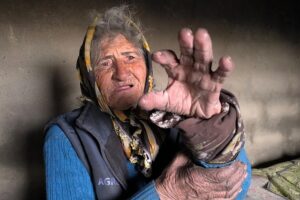 “Eşim öldü baba yurdundayım. Bir tek makus bir odanın içerisindeyim. 65’lik maaşı veriyorlar, ne yapayım? Ufak tefek harcıyorum. Olursa konutun içerisinde yapıp yemek yiyorum olmazsa yatıyorum, aç kalıyorum. Donuyorum, soba makus bir soba, hiç uygun değil. Odun ne gezer, ocak ne gezer. Olandan ufak tefek çalı çırpı bulup yakıyorum. Elimde çalı, odun sobayı yakacağım, dondum. Bu kolum çıkmış. Ayağım birbirine dolaşıverdi düştüm. Ne bulursam onu yiyorum. El fenerim var onunla uğraşıyorum, öbür bir şey yok.”