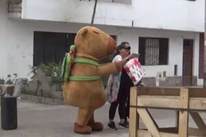 Bir polis memuru, uyuşturucu satıcısı olduğu kuşkusuyla aranan kişiyi yakalamak için kapibara kostümü giydi.