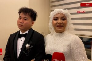 Rize’nin Çayeli ilçesinde yaşayan Neslihan Korkmaz (30), 5 yıl evvel arkadaşları vasıtasıyla toplumsal medyada tanışıp, aşık olduğu Çinli Tou Liao (32) ile evlendi.