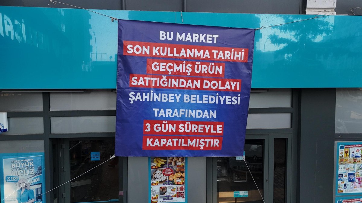 Gaziantep’te Şahinbey Belediyesi, halkın sıhhatini hiçe sayan marketlere müsaade etmeyerek son kullanma tarihi geçmiş eser satan iki zincir marketin şubesine 3 gün kapatma cezası uyguladı.
