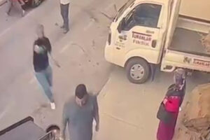 Saldırı anı etraftaki bir iş yerinin güvenlik kamerası tarafından kaydedildi.