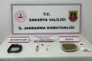 Sakarya Vilayet Jandarma Komutanlığı takımlarınca Serdivan ve Hendek ilçelerinde M.E.O. (29), F.V. (32) ve H.T. (32) isimli şahısların konutlarında yapılan aramada 340 gram bonzai, 27 gram metamfetamin ve 2 adet uyuşturucu kullanma aparatı ele geçirildi.
