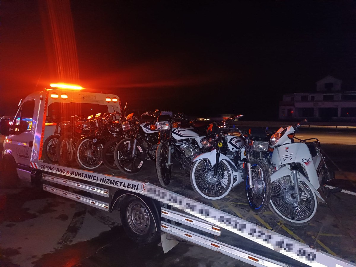 Bu kapsamda takımlar, Adapazarı, Hendek, Erenler ve Akyazı ilçelerinden Akyazı ilçesi Gebeş Mahallesi mevkiine gelen en az 70 motosikletten oluşan kümenin yasadışı motosiklet müsabakası düzenlediğini belirledi.