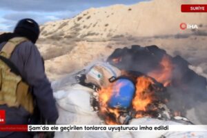Suriye’nin başşehri Şam’ın kırsalında ele geçirilen tonlarca uyuşturucu husus yakılarak imha edildi.