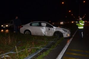 Kazada, çarpışmanın tesiriyle direksiyon hakimiyeti kaybedilen araba refüjde bulunan aydınlatma direğine çarptı.