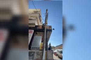 Zincir markete gelen usta Kadir Kayış elektrik direğine tırmandı.
