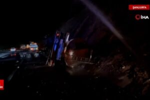 Şanlıurfa’da devrilen akaryakıt tankeri alev alev yandı. Yangın itfaiye gruplarınca denetim altına alındı.