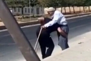 Şanlıurfa’da güvenlik görevlisi, yürümekte zorlanan yaşlı adamı sırtında taşıdı