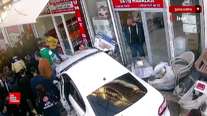 Şanlıurfa’da kaza yaptıktan sonra denetimden çıkan araba, kaldırımda yürüyen baba ve oğluna çarptı. Kaza anı güvenlik kamerasına yansıdı.