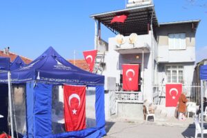 Acı haber sonrası Osman Oktay’ın Konak ilçesi Kocakapı Mahallesi’ndeki baba ocağına Türk Bayrakları asıldı. Acı haberi duyanlar ise taziyeye koştu.