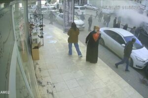 Kaza anı güvenlik kameralarına saniye saniye yansırken, etraftaki vatandaşlar çabucak harekete geçerek sürücüyü araçtan çıkardı.