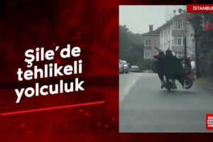 Şile’de motosikletle seyir halinde olan 2 kişi, bindikleri motosikletin üzerine diğer bir motosiklet yükleyerek seyahat yaptı. O anları kaydeden vatandaşlar, gördükleri görünüm karşısında kahkahalarını tutamadı.