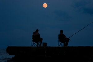 Sinop’ta kıyıda bulunan balıkçılarla birlikte ay görünümü hoş manzaralar oluşturdu. Kentteki görüntü, masalları anımsattı.