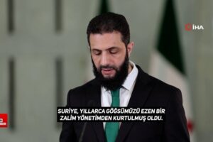 Cumhurbaşkanı seçildikten sonra birinci ulusa sesleniş konuşmasında Suriye’nin çeşitliliğini yansıtan kapsamlı bir geçiş hükümeti kurmak için çalışacaklarının altını çizen Ahmet eş-Şera, güçlü devlet kurumları inşa edecekleri vurgusunu yaptı.