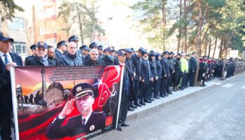 Diyarbakır’da şehit edilen Gaffar Okkan ve 5 polis memuru için düzenlenen anma merasiminde kimi binaların balkonlarına ve camlarına şehit Okkan’ın fotoğrafı asılırken, merasimde konuşan Vilayet Emniyet Müdürü Fatih Kaya, Diyarbakır’ın Gaffar babasının vazife yaptığı müddette halka, devletin kucaklayıcı ve şefkatli yüzünü gösterdiğini belirtti.