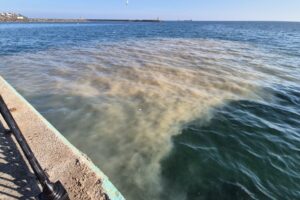 Çalışma esnasında biriken çamurlu suyun yağmur suyu kanallarına karışarak denize akması sonucu geniş bir alanda sarı renk oluştuğu tespit edildi.