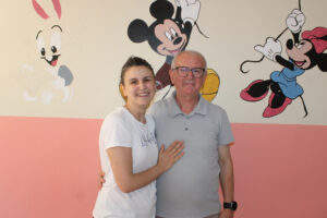 Yaklaşık iki ay süren çalışmada baba-kız, 2025-2026 eğitim öğretim yılı öncesinde okulun duvarlarını çocukların ilgisini çekecek figürlerle donattı.