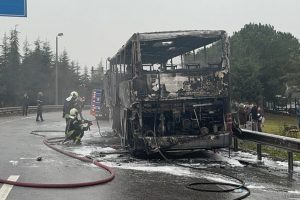 TEM Otoyolu’nun Gebze mevkiinde, Karadeniz Bölgesi’nden yola çıkan 34 LR 6052 plakalı kentler ortası yolcu otobüsünde, seyir sırasında bir yolcu yanık kokusu aldığını fark ederek durumu muavine bildirdi.