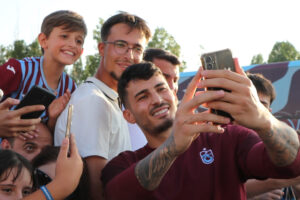 Erzurum’un Palandöken Dağı eteklerindeki Yüksek İrtifa Kamp Merkezi’nde dönem hazırlıklarını sürdüren Trabzonspor’da futbolcular, taraftarla bir ortaya geldi.