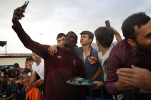 Palandöken Dağı eteklerindeki Yüksek İrtifa Kamp Merkezi’nde dönem hazırlıklarını sürdüren Trabzonspor futbolcuları, ikinci etap kampında takviye için yağmura karşın gelen taraftarlarla coşkulu anlar yaşadı. Taraftarlar, teknik yönetici Fatih Tekke ve oyuncularla sohbet edip fotoğraf çekildi, forma imzalattı.