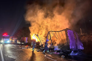 Uşak’ta tırın dorsesinde yangın çıktı: Alevler güçlükle söndürüldü