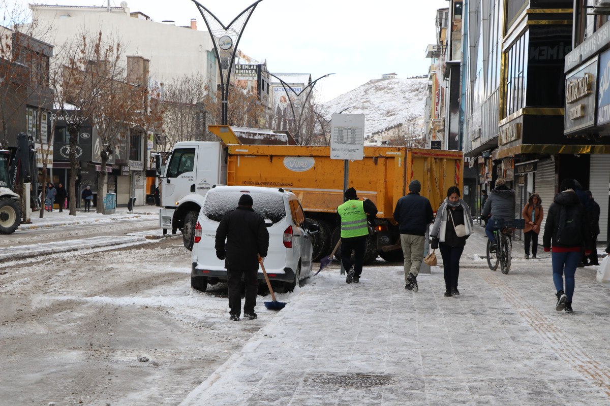 Kent merkezindeki ana caddelerde de kar temizleme çalışması yapıldı.