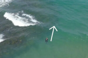 Akıntıda yaklaşık 100 metre sürüklenen Ünal, panik yapmadan sakinliğini koruyup, yüzerek kapıldığı akıntıdan çıktı. O anlar drone’la görüntülendi.