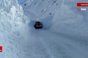 Hakkari’nin Yüksekova ilçesinde, ağır yağış ve tipi nedeniyle kar kalınlığının 5 metreyi bulduğu yolda çalışmalar devam ediyor.