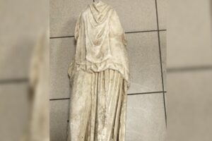 Yunanistan’ın Neoi Epivates bölgesinde yaşayan bir kişi, 80 santimetre uzunluğundaki başsız heykeli fark etti ve yetkililere teslim etti.
