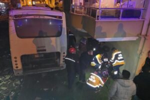 Zonguldak’ta freni boşalan midibüs apartman boşluğuna düştü: 2 yaralı